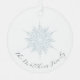 Ice blue snowflake personalised family name in calligraphy metal ornament. Detailed ice blue snowflake design. Customise with your names in dark navy calligraphy. Designed to match our Ice Blue Snowflake Christmas Collection.