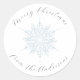 Ice Blue Snowflake Merry Christmas Family Name Classic Round Sticker