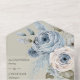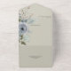 Your winter wonderland wedding deserves an invitation that captures the magic and charm of the season. Let this All-in-One winter wedding invitation with its captivating ice blue floral design on sage green background be the perfect prelude to your unforgettable celebration of love. The All-in-One wedding invitations are both beautiful and practical by combining the wedding invitation with an easy to remove perforated RSVP postcard. They are also quick and easy to prepare for mailing. Simply address the invitation, fold the back flap and seal with the included clear stickers. Once your guests receive the pre-addressed invitation they simply tear off the perforated RSVP card and drop it in the mail. The addition of the QR code allows your guests to easily access your wedding website for information including reception details and dinner choices!