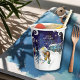 One side features a flying fairy delivering a new baby, while the other shows a friendly snowman and deer welcoming them to the "fancy" ice blue village. Framed by your signature playful swirls.