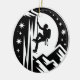 This bold ornament features a striking black-and-white silhouette of an ice climber scaling a jagged ice wall, surrounded by snow-capped mountains. The climber is equipped with an ice axe and crampons, capturing the thrilling spirit of extreme sports and mountaineering. A full moon and sparkling stars in the background highlight the climber's nocturnal adventure, adding a sense of awe and tranquillity to the scene. This design is perfect for outdoor enthusiasts, extreme sports lovers, and those who appreciate minimalist, high-contrast artwork.