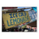 Card features an original colour photograph of ice cold lemonade for sale at a street fair in New York City.