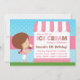 Personalise this child's Ice Cream Birthday Party Invitations. Features a cute little girl with brown hair and a Pink and White Ice Cream. Customise with your Birthday Party details. Some elements Zenware Design at Mygrafico.