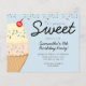 Cute double scoop ice cream illustration with fun pastel sprinkles. Artwork by Valarie Wade. Perfect invitation for kid's summer time birthday parties. Just use the simple template to adjust the text for your next birthday party bash.