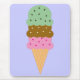 This design features a triple scoop ice cream cone (strawberry, chocolate white chocolate chip and mint chocolate chip) on a light purple background. Background colour can be changed by clicking on "Customise It."