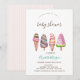Ice Cream,Cone Pink Striped Baby Shower Invitation