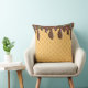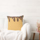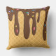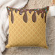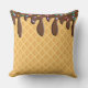 This custom throw pillow features a yummy looking ice cream cone design. The background is waffle cone pattern. Brown chocolate frosting drips with rainbow sprinkles is dripping from the top.