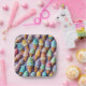A delightful assortment of colourful ice cream cones with sprinkles is arranged against a vibrant purple backdrop