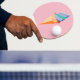 Origami ice cream cone , custom background pink pong paddle.