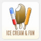 Square Sticker for children with illustrations of delicious ice cream popsicles. The Square Sticker would be perfect for a birthday party held on a hot day.