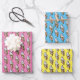 A fun all-over pattern of ice cream cones. Ice creams in a pop-art style. Fun ice cream wrapping paper. Three different background colours with a pattern of gelato.