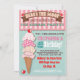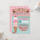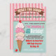 Old fashioned ice cream parlour inspired birthday party invitation with an illustration of ice cream scoops in different patterns stacked on top of each other with fun typography, striped awning, banner and cherries all on a vintage aqua background. Great for a birthday or an ice cream social. Hand drawn illustration by McBooboo. Please contact me with any custom changes or questions!