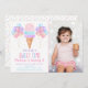 This cute invitation features an ice cream cone and balloons in pastel rainbow colours with faux gold foil confetti.