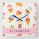 Ice Cream Pattern, Ice Cream Cone, Your Name Square Wall Clock