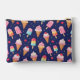 Pattern on blue background with creamy ice cream and popsicles, cherries and confetti floating around. Cute whimsical food design.