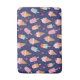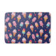 Pattern on blue background with creamy ice cream and popsicles, cherries and confetti floating around. Cute whimsical food design.