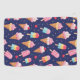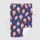 Pattern on blue background with creamy ice cream and popsicles, cherries and confetti floating around. Cute whimsical food design.