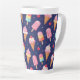 Pattern on blue background with creamy ice cream and popsicles, cherries and confetti floating around. Cute whimsical food design.