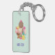 Acrylic keychain illustrated with drawing of a 3 scoop ice cream sundae with colourful sprinkles. An ice cream cone with scoops of chocolate, strawberry and vanilla. A bowl of neopolitan ice cream with a cherry on top. Strawberries and a pineapple fruit sit beside the bowls. Summery and sweet.