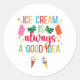 Ice Cream Social Round Stickers. Ice Cream is Always a Good Idea. Invite your friends or neighbours over for a fun evening of ice cream.