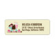 Return address labels with a sweet ice cream theme. Illustrated with a chocolate ice cream bar, 3-scoop sundae with a cherry on top, and a strawberry float. Little strawberries and cherries too.