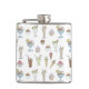 Deliciously cute, illustrated ice cream and cake collage on decorative hip flask.