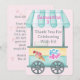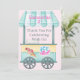 This lovely card continues your ice cream party theme with the same watercolor ice cream cart in soft pink, turquoise, and beige tones. The sweet, gentle design creates a perfectly coordinated thank you that guests will find absolutely charming.