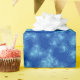 Star-like bursts of ice crystals with snow against a deep blue evening sky background