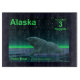 Another in the series of postage stamps for an independant Alaska. A peaceful moment in the long Arctic night. A Polar Bear rests at the edge of an open area in the pack ice.The Northern Lights glow in the distance; bright stars twinkle overhead. Polar bears are endangered. How much longer will scenes like this be able to occur? Please help save Polar Bears from extinction.
