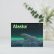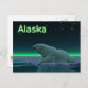 A peaceful moment in the long Arctic night. A Polar Bear rests at the edge of an open area in the pack ice. The Northern Lights glow in the distance; bright stars twinkle overhead. Text reading "Alaska" appears in glowing green and white. Polar bears are endangered. How much longer will scenes like this be able to occur? Please help save Polar Bears from extinction.