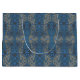 Ice flowers, blue & grey floral pattern, rustical large gift bag