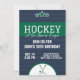 Ice Hockey Birthday Blue Green Stripe Invitation