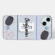 This personalised phone case has a ice hockey fans design with a hockey ring and two illustrated pucks. Personalised this phone case with a first or last name and a initial. A great personalised sports gift to give the ice hockey fan in your life that play card games.