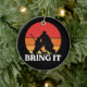 Hockey theme ornament with silhouette hockey goalie and text that reads Bring It!