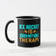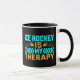Hockey theme mug with hockey pucks and text that reads Ice Hockey is My Therapy!
