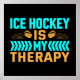 Hockey theme poster with hockey pucks and text that reads Ice Hockey is My Therapy!