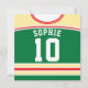 Personalised party invitiations made for hockey crazy kids and adults! Can be used for birthday's, bar mitzvah's, engagement and anniversary parties, and much more! Customise the back of the invite with your choice of name and jersey (age) number. The front of the invite is in the style of a hockey jersey complete with collar and lace. To change text and background colours and to add more lines of text, scroll to below the text boxes on the right and click on 'Click to customise further'. This jersey's colours are green, red and cream. If you don't see the colour scheme you want in my store, please use the 'Contact this Designer' link below and I will be happy to help.