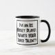 Funny slogan on a mug that says "I'm an Ice Hockey Player. What's YOUR super talent?". Two Tone Mug for an Ice Hockey Player. Black and white bold text.