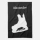 Black and white personalised hockey skate towel - a useful gift for hockey players considering it is essential to dry out the blades after practice.
