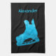 Turquoise personalised hockey skate towel - a useful gift for hockey players considering it is essential to dry out the blades after practice.