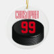 Sports themed ornament - Ice hockey. Personalise it with your players Name and Number on one side, and Team and Year on the other! Great gift for kids playing youth ice hockey.