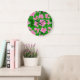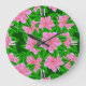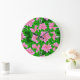 Ice Pink Camellias and Green Leaves Large Clock