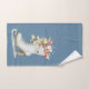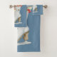 This bath towel set includes and wash cloth, hand towel and bath towel that features an ice skate filled with a Christmas bouquet and gift on a winter blue coloured background. You can buy this whole set or you can buy the items individually. This is sure to make your bathroom stand out!