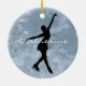 Ice Skater Figure Skater Ornament on a icy, frosted blue background. All text customisable, front and back!