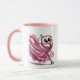This ceramic coffee mug is shown with a sports ice skater art print.