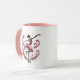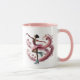 This ceramic coffee mug is shown with a sports ice skater art print.