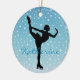 Ice Skater Ornament on turquoise background with white stars. All text customizable, front and back!