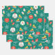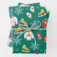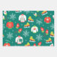 Add a festive custom touch to your home holiday presents with this fun teal Christmas pattern wrapping paper sheet set with ice skates, sweaters, snowflakes, and mittens. Add your family monogram initial for a personalised touch!