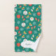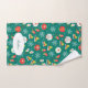 Add a festive custom touch to your home holiday bathroom Christmas decor with this fun teal pattern with ice skates, sweaters, snowflakes, and mittens. Add your family monogram initial for a personalised touch!