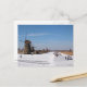 Ice skating along the windmills in winter postcard